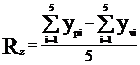 - adancimea medie in zece puncte - fig. 13, simbolizata cu Rz, adica diferenta intre media aritmetica a ordonatelor celor mai de sus cinci proeminente si a ordonatelor celor mai de jos cinci goluri ale profilului efectiv, masurate in limitele lungimii de baza de la o dreapta paralela cu linia medie care nu intersecteaza profilul: