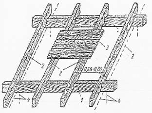 In fig. 8.7 se reprezinta o portiune din planul unui acoperis avand sarpanta pe scaune. Pana de coama solidarizeaza capriorii inclinati din dreptul coamelor inclinate.