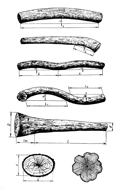 O singura deviere curba a axei longitudinale a lemnului rotund (fig. 6.4 a) |