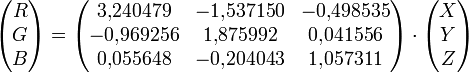Pentru a determina valorile RGB necesare producerii unei anumite culori, trebuie inmultit vectorul XYZ de obtinut cu inversa matricii de mai sus: