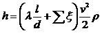 unde l reprezinta coeficientul pierderilor hidraulice pe portiuni drepte, iar Sx este suma pierderilor hidraulice locale.