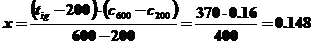 Se cunosc caldurile specifice ale gazelor la temperaturile de 2000C si de 6000C. Prin interpolare se calculeaza caldura specifica cig a gazelor la temperatura tig.