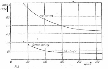 in functie de lungime L pentru radiatorul de tip R.