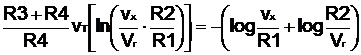 unde s-a cd ca termenii:vT(R3+R4)/R4=0,4343=log10(e) si R2/Vr,sunt astfel dimensionati,incit sa se asig trecerea de la log natural la log zecimal.