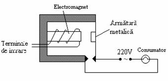 Aplicand o mica tensiune la terminalele de intrare (12V sau 24V), electromagnetul atrage armatura metalica inchizand astfel contactul din circuitul de putere alimentat la 220V.