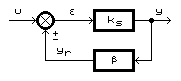 b) Imbunatatirea caracteristicii statice se face prin practicarea unei legaturi inverse de la iesire la intrare (fig.3) printr-un bloc care are coeficientul de transfer static β numit si factor de reactie. Blocul de pe calea directa are coeficientul de transfer static ks. Din scema bloc prezentata se poate scrie :