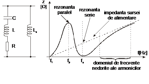 Prin conectarea unei inductante Ls in serie cu bateria de condensatoare, conditiile de rezonanta paralel sunt transferate in afara domeniului frecventelor armonice, la frecvente mai mici.
