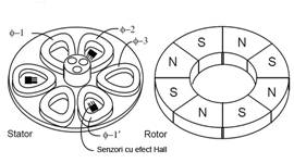 motorul trifazat fara perii se aranjeaza trei comutatoare Hall