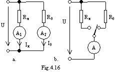 Metoda se poate aplica si masurand curentii I0, respectiv Ix prin cele doua rezistente, sub tensiune constanta: