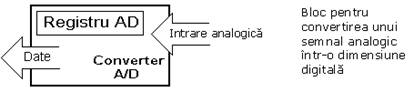 Pentru ca semnalele de la periferice sunt substantial diferite de cele pe care le poate intelege microcontrolerul (zero si unu), ele trebuie convertite intr-un mod care sa fie inteles de microcontroler. Aceasta sarcina este indeplinita de un bloc pentru conversia analog-digitala sau de un convertor AD. Acest bloc este responsabil pentru convertirea unei informatii despre o anumita valoare analogica intr-un numar binar si pentru a o urmari pe tot parcursul la un bloc CPU asa ca blocul CPU sa o poata procesa.