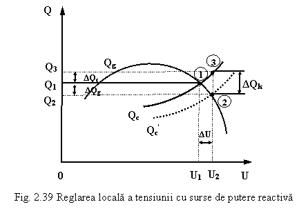 In figura 2.39 se prezinta modul de reglare locala a tensiunii cu surse de putere reactiva instalate la bornele consumatorului [2.3].