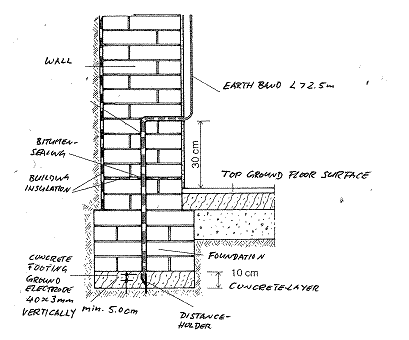 I Intre armaturi, o banda de otel de 30 x 4 mm ,galvanizata, este conectata printr-o alta banda de otel verticala de 30 x 4 mm,galvanizata precum si cu invelis sintetic si scos afara pe interiorul peretelui exterior. (vezi figura de mai sus)