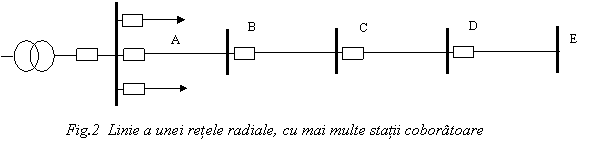 Reteaua electrica cea mai simpla este reteaua radiala care consta din linii alimentate de la un singur capat. In fig 1 este reprezentata o portiune dintr-o retea radiala in care de la barele statiei pleaca o serie de linii, avand fiecare un singur consumator la capat