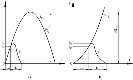 - ipt curentul prezumat taiat, definit ca valoarea instantanee a ip in momentul aparitiei arcului electric;