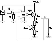 AE amplificator de eroare; compara nivelul de tensiune generat de reteaua de reactie cu nivelul de tensiune al sursei de referinta si genereaza la iesire un semnal proportional cu diferenta dintre ele (amplifica semnalul de eroare).