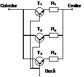Exista si situatia de conectare a tranzistoarelor in paralel cu rezistenta de balast. Acest tip de conexiune se utilizeaza in electronica de putere. Nu v-a fi prezentat In continuare se vor prezenta succint solutiile enumerate.