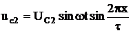 doua tensiuni sinusoidale, defazate intre ele cu 90o. Prin condensatoarele