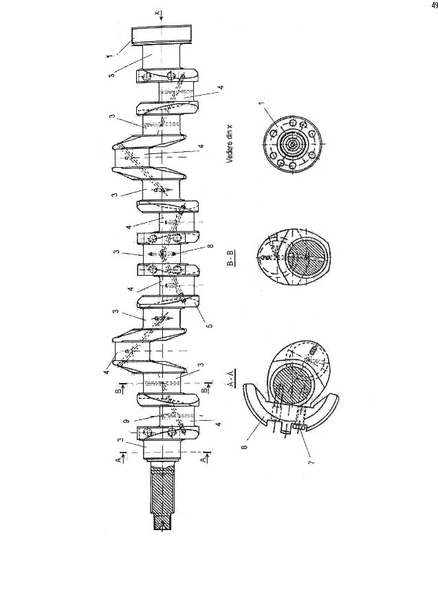 unor fusuri de reazem, numite fusuri palier. Considerand si fusurile palier de la extremitatile arborelui cotit, rezulta ca, in mod obisnuit, un arbore are (i+1) fusuri palier la motoarele in linie si (i/2+1) fusuri palier la cele in V. La motoarele de puteri foarte mici, fusurile palier intermediare pot lipsi, legatura dintre coturi realizandu-se prin intermediul unui brat comun, oblic (fig. 48.).