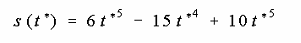 Examinand cerintele functiei s a traiectoriei, se observaca pentru 6 conditii finale impuse, va trebui sa folosim un polinom de ordinul 5. Daca vom considera cei 6 coeficienti ai polinomului necunoscuti, putem inlocui cele 6 conditii finale cu 6 ecuatii care trebuie satisfacute de coeficienti. De fapt, aceasta se reduce la a obtine doar trei coeficienti, din moment ce trei dintre ei se obtin imediat folosind conditiile pentru t*=0. Polinomul rezultant este:
