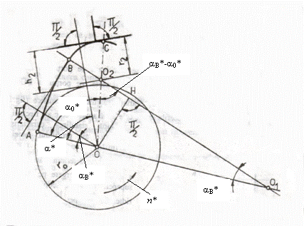 iar punctul B corespunde cursei maxime a SE, adica mijlocul fazei de evacuare. In mod analog, arcul CE corespunde rotirii arborelui cotit cu unghiul: