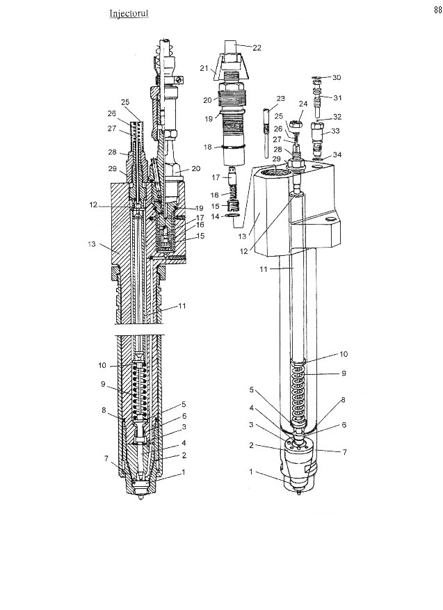 In figura de la pagina 123, sunt prezentate 2 injectoare prevazute cu ac inchis prin resort si actionate de presiunea combustibilului ce vine de la pompele de injectie.
