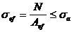 Valoarea efortului N se ia din diagrama de eforturi axiale ca fiind valoarea cea mai mare in modul . Se tine seama de semnul efortului axial in cazul materialelor care au o comportare diferita la intindere fata de compresiune . In acest caz , se cunosc doua valori pentru a una pentru tractiune , care se va compara cu valoarea efectiva a tensiunii calculata cu valoarea maxima pozitiva din diagrama de eforturi axiale si una de compresiune care se va compara cu valoarea efectiva calculata cu valoarea maxima negativa a efortului axial ( din aceeasi diagrama de eforturi axiale )