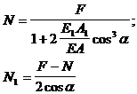 Relatiile ( 2 . 42 ) si ( 2 . 46 ) formeaza un sistem de doua ecuatii cu cele doua necunoscute N si N1 . In urma rezolvarii se determina cele doua eforturi ca fiind date de relatiile :