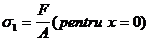 Se observa variatia liniara a efortului axial si a tensiunii normale σ in lungul axei barei cu valorile la capetele barei :