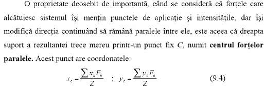 44. Ce conditie trebuie sa satisfaca un sistem de forte paralele pentru a putea definii centrul acestor forte?