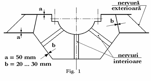 functie de realizarea camerei de ardere care sa imbrace forma jetului de combustie. La acestea, pentru a le spori rezistenta, partea inferioara a pistonului este prevazuta cu nervuri de rigidizare.