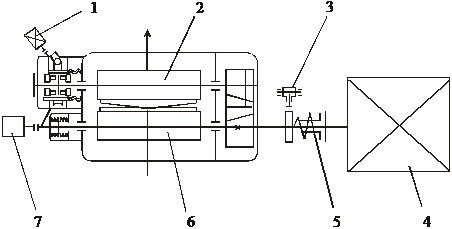 Fig. Schema cinematica a unui foarfece stationar cu cutite paralele pentru taierea semifabricatelor: 1-cutit inferior mobil; 2-cutit superior mobil; 3-arbore cu doua manivele; 4-biela cutitului inferior; 5-biela cutitului superior; 6-biela dispozitivului de apasare; 7-echilibrari; 8-frana; 9-motor; 10-reductoare. |
