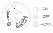 LOCK: Rotati ghidonul spre stanga, faceti o usoara presiune asupra cheii astfel pozitionand-o in LOCK. Cheia poate fi scoasa din contact.