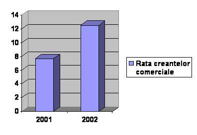 Creantele comerciale, inregistreaza o rata redusa atat in 2002 (7,68%), cat si in 2003 (12,53%), fapt ce duce la concluzia ca intreprinderea vine in contact direct cu o clientela ce plateste in numerar.