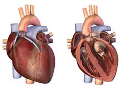 Inima dreapta este alcatuita din atriul si ventriculul drept, separate prin orificiul atrioventricular drept.