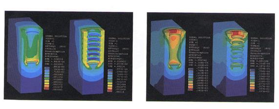 In cazul implantelor endoosoase supuse unor conditii asemanatoare de stress ocluzal, lipsa ligamentelor dento-alveolare are ca rezultat scaderea mobilitatii fiziologice la 5mm in sens axial si la 10-50mm in sens lateral Astfel centrul de rotatie al implantului se va deplasa inspre creasta osoasa si va concentra stressul la nivelul acesteia (Parfitt si Sekine).