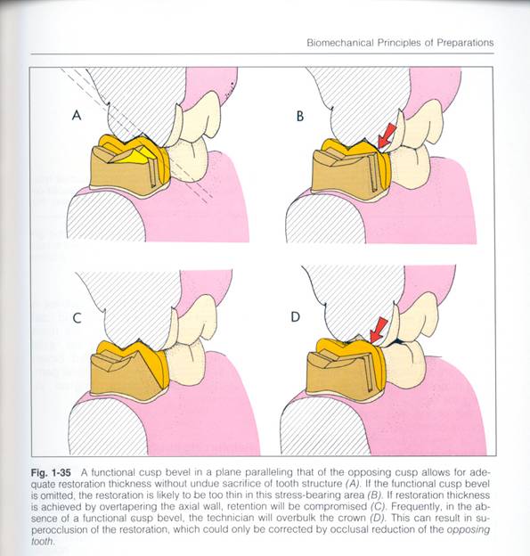 o indepartarea de substanta dentara suficienta pentru rezistenta viitoarei coroane. Pentru a se obtine un perete coronar suficient de rezistent in dreptul stopului ocluzal se realizeaza bizotarea cuspizilor functionali, pe versantul extern al cuspizilor palatinali la maxilar, respectiv vestibulari la mandibula.